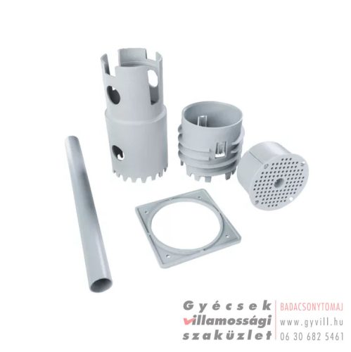 Utólag hőszigetelésbe rögzíthető szerelvénydoboz készlet, amely legalább 80 mm vastag polisztirol és kőzetgyapot szigeteléshez is alkalmas. A gumis bevezetésű doboz stabil rögzítést biztosít, akár már elkészült szigetelésben is.