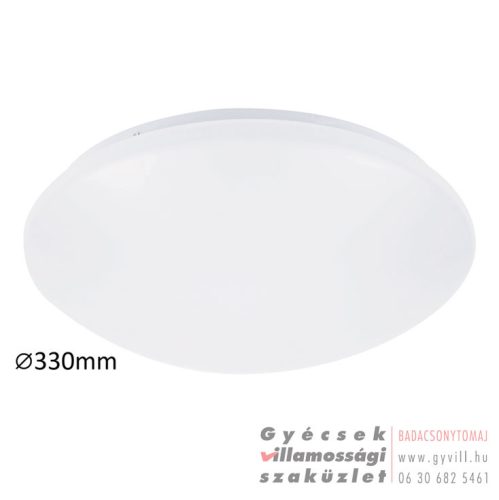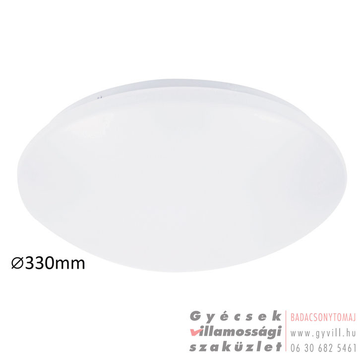 Időtlen megjelenésű mennyezeti lámpa beépített energiatakarékos LED fényforrással. 33 cm átmérőjű, fém ház és fehér színű műanyag lámpabúra. A beépített LED fényforrás 18W teljesítmény mellett 1350 lumenes fényerőt, valamint 4000 Kelvines, természetes fehér színű fényt biztosít. 5 év garanciával! 5 év garanciával. A lámpatestben a fényforrás nem cserélhető!