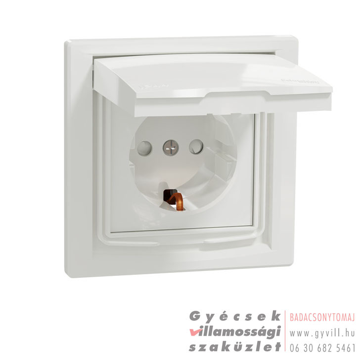 Schneider ASFORA IP44 2P+F biztonsági zsalu csapfedeles fehér