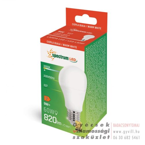 Spectrum GLS / E27 / 9 W / 820 lm / Meleg fehér